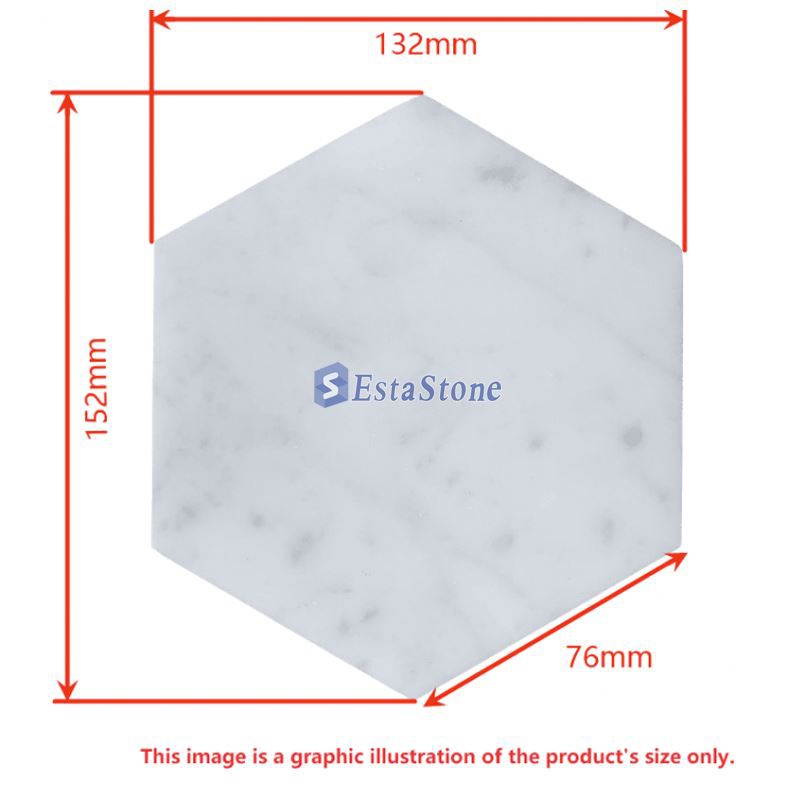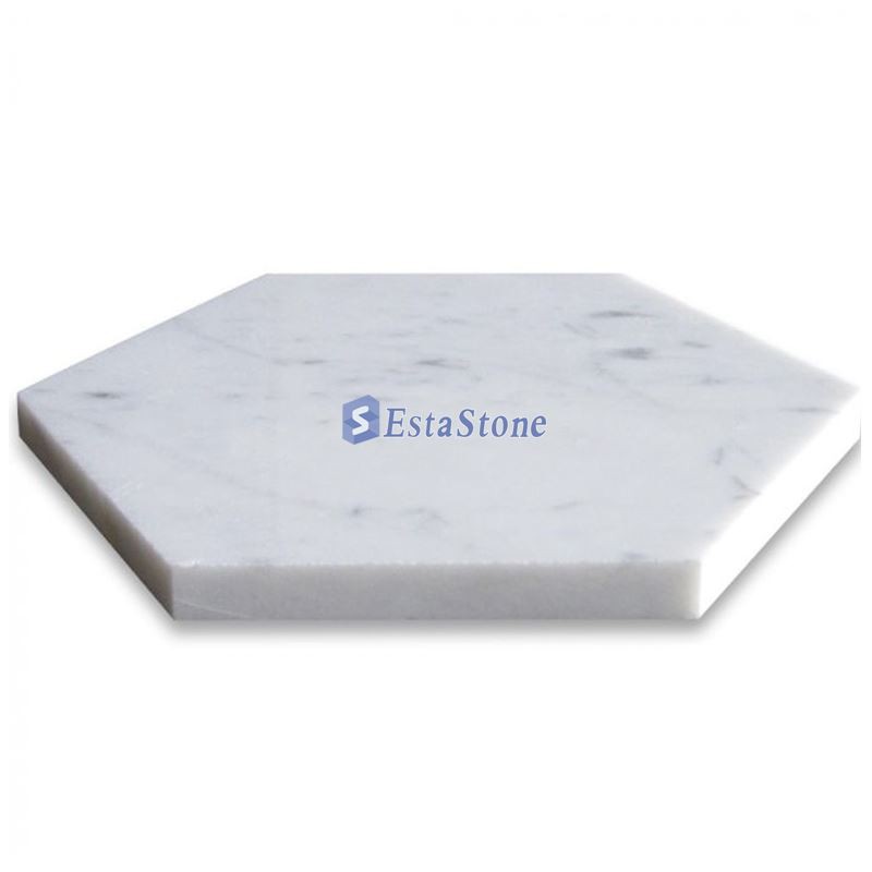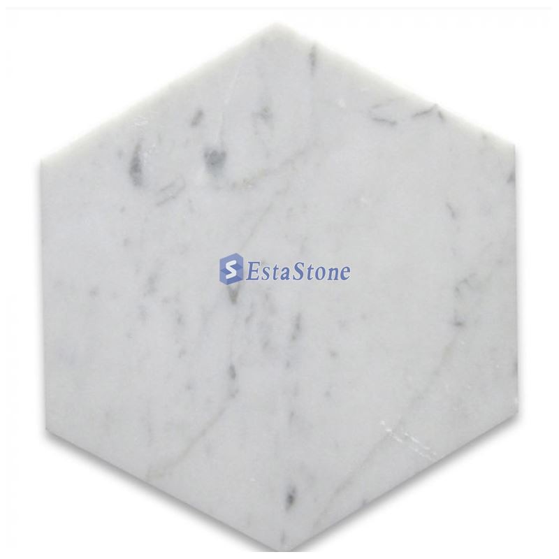 بلاط أرضيات سداسي من رخام كارارا الأبيض فئة ممتازة، مصقول أو مُشْرَف، مقاس 6 بوصات، مناسب لبلاط الجدران والأرضيات، ومثالي لأي مساحة داخلية أو خارجية