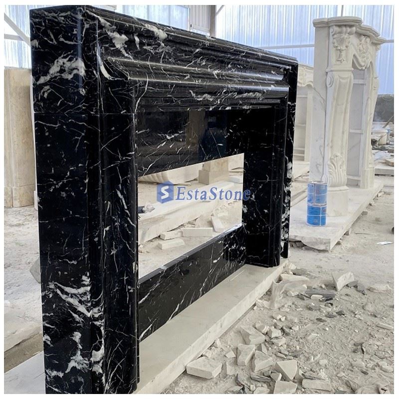 Nero Marquina Black And White Marble Fireplace For Living Room Interior Decoration