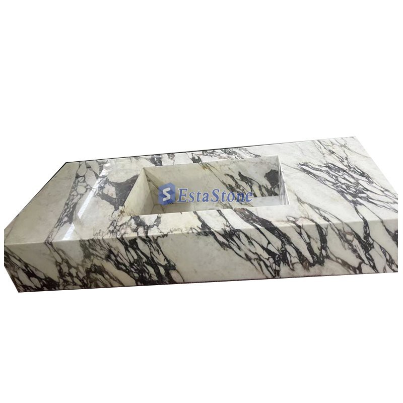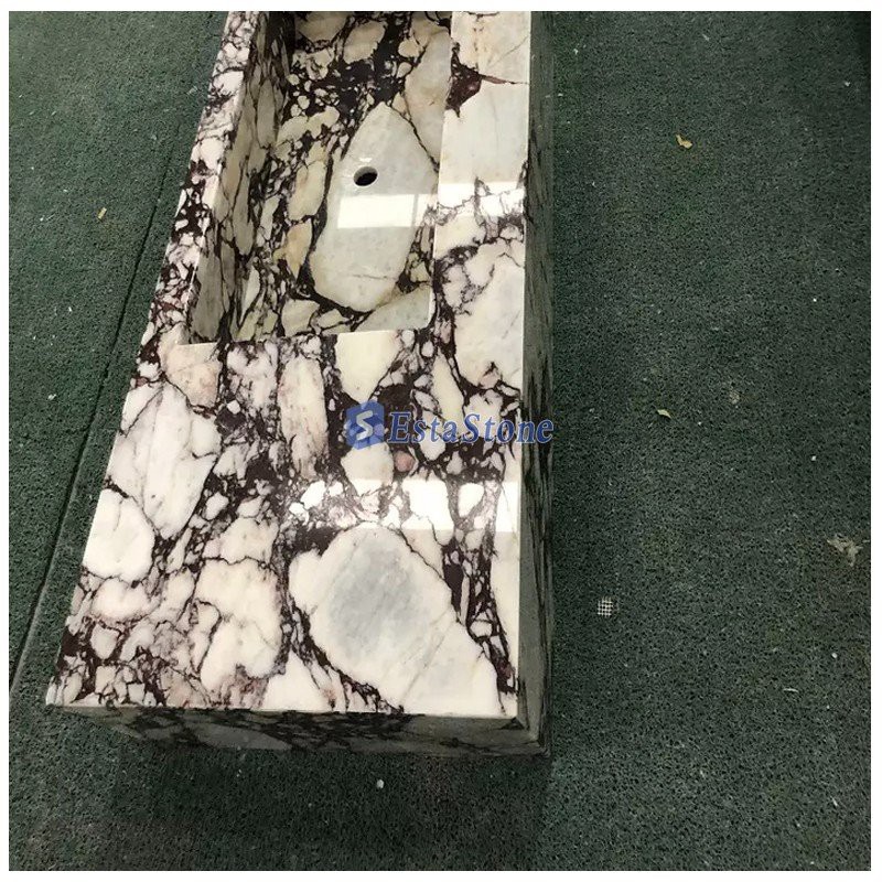Интегрираната мраморна мивка Calacatta Viola ще придаде индивидуален характер и ще отличи всеки дизайн на баня, като например обществени тоалетни в хотели, бани във вили и други проекти за тоалетни в търговски сгради.