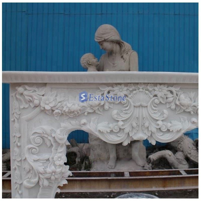 Hand Carved White Marble Fireplace Mantel Inspired by classic French beauty, this white marble fireplace mantel is sculpted from natural white marble.