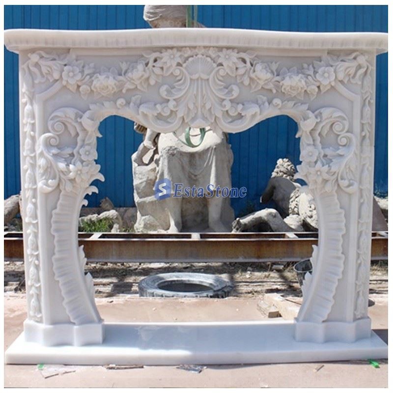 Natural White Marble Flower Carving Fireplace Mantel For Interior