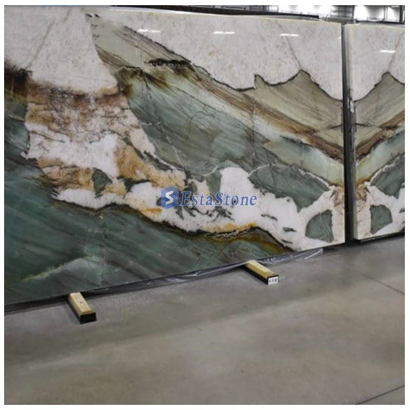 Patagonian vihreä kvartsiitti on Brasiliasta peräisin oleva kvartsiitti. Tämä ainutlaatuinen luonnonkivi yhdistää rakenteessaan vaaleaa, tasalaatuista ja läpinäkyvää kvartsiittikiveä. Sillä on pehmeä pohja ja kirkkaita pilkkuja läpinäkyvää ainetta. Patagonian Green Extra Quartzite on kestävä materiaali ja kestää kulutusta. Tämä näyttävä valkoinen ja vihreä kvartsiitti korostaa epäilemättä mitä tahansa sisustusta luonnollisella taiteellisella rakenteellaan. Patagonian taiteellisia piirteitä voidaan parantaa takavalon avulla.