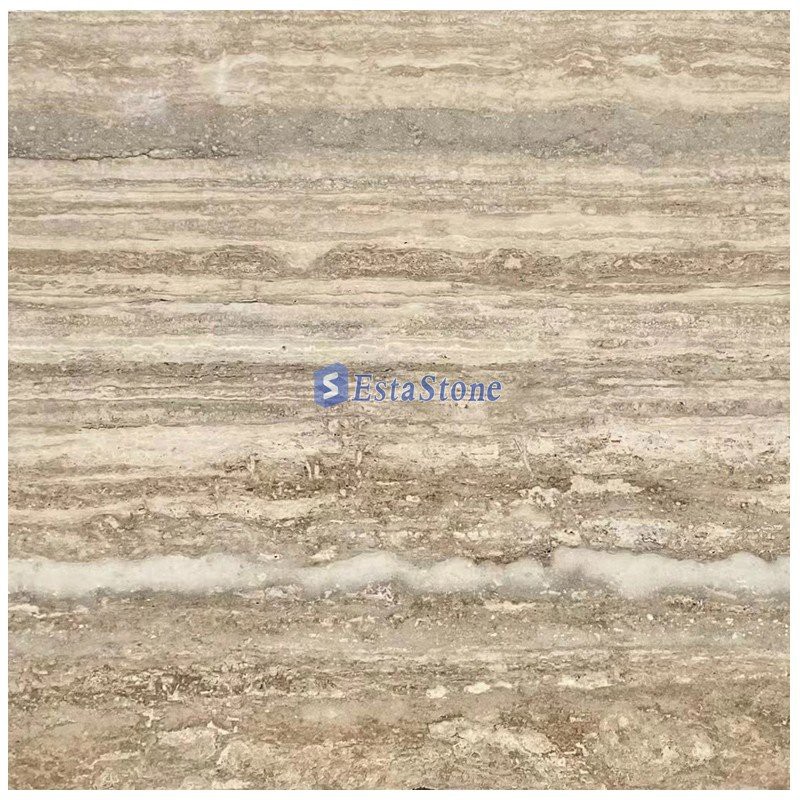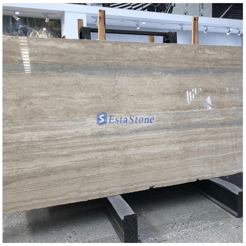 Les dalles italiennes en travertin argenté sont taillées de manière à favoriser les veines naturelles de la pierre, ce qui donne une surface harmonieuse qui présente des lignes continues et presque droites tout au long de son parcours. Les dalles en travertin argenté veiné sont l'un des matériaux les plus couramment utilisés dans la conception de maisons modernes.