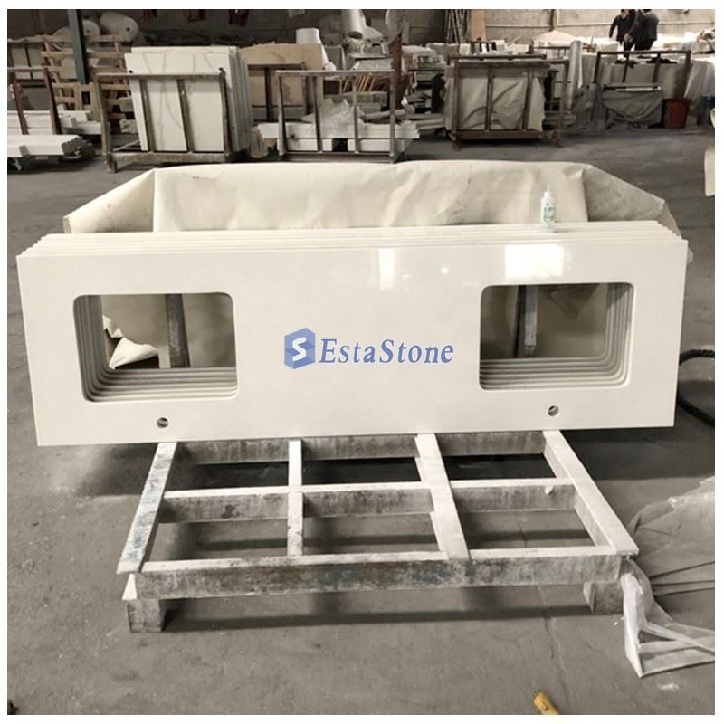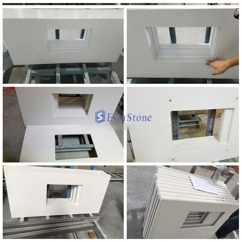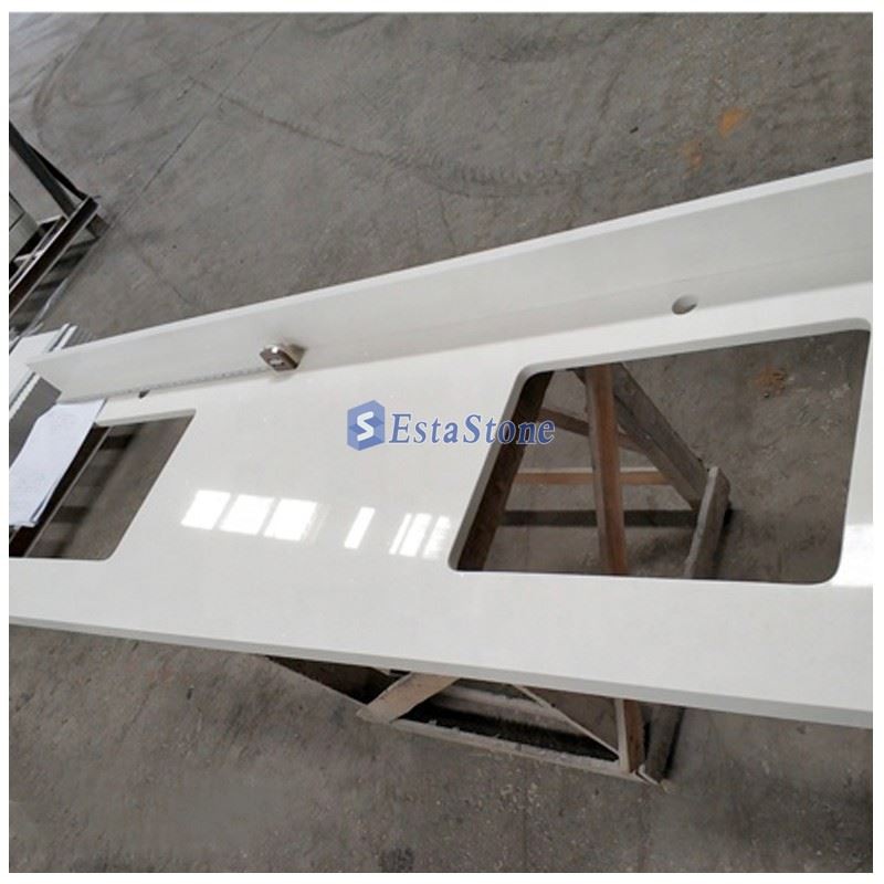 Plans de travail en pierre de quartz blanc pur pour vasques de salle de bains dans les toilettes publiques