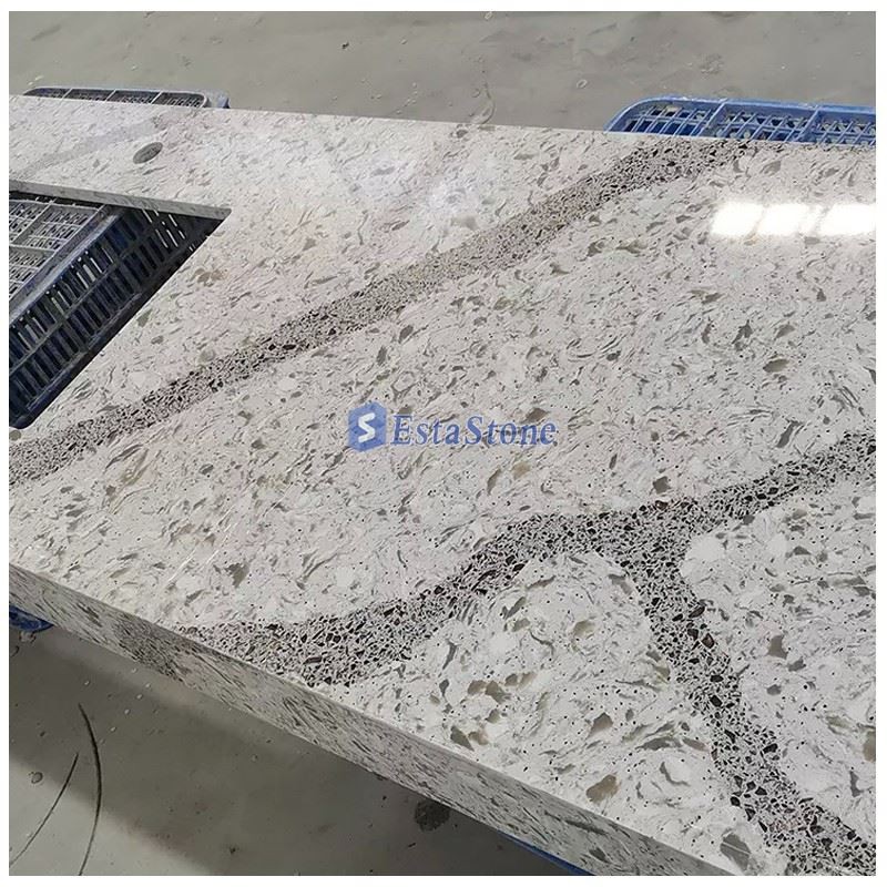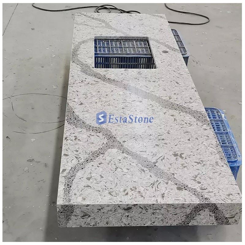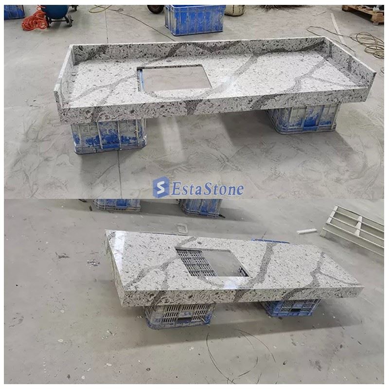 Prefab Calacatta Grey Quartz Stone Kitchen and Bathroom Countertop For Residence Projects