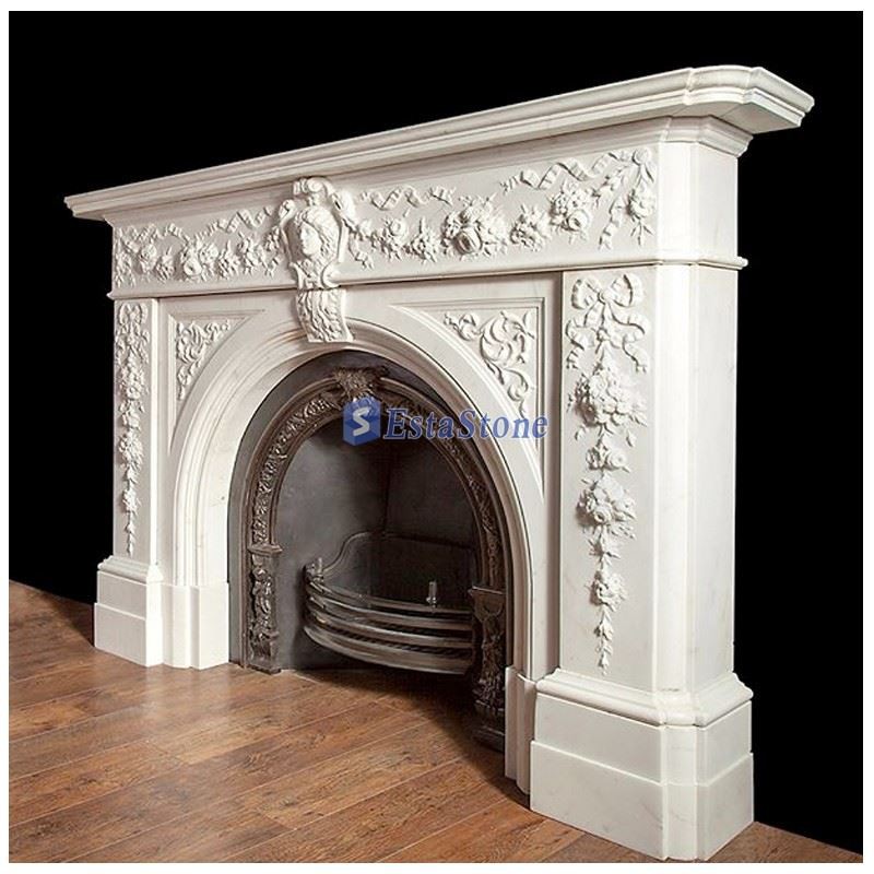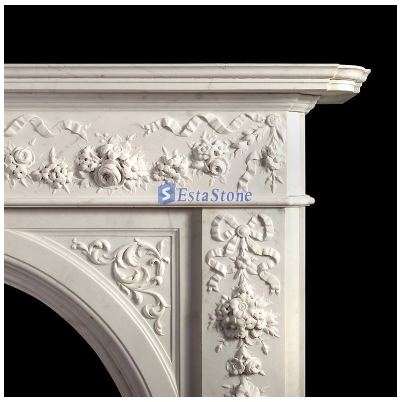 Classic white marble color for style Georgian marble fireplace mantel displayed in our warehouse, this is the classic Georgian design style. We use high-quality white marble material to make this classic and ancient fireplace.