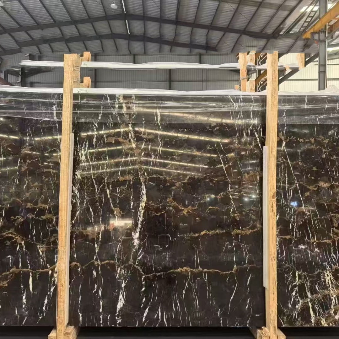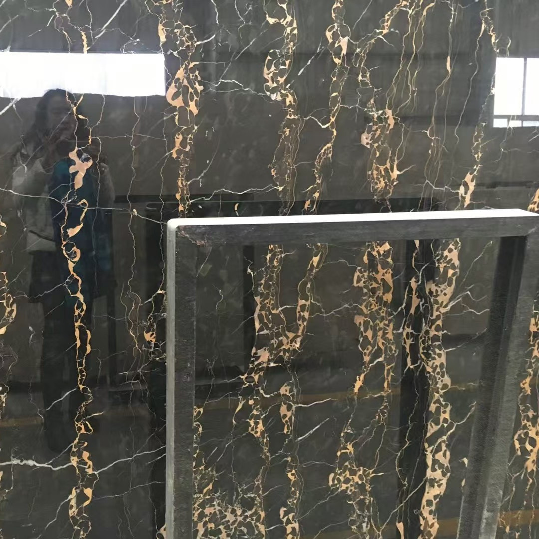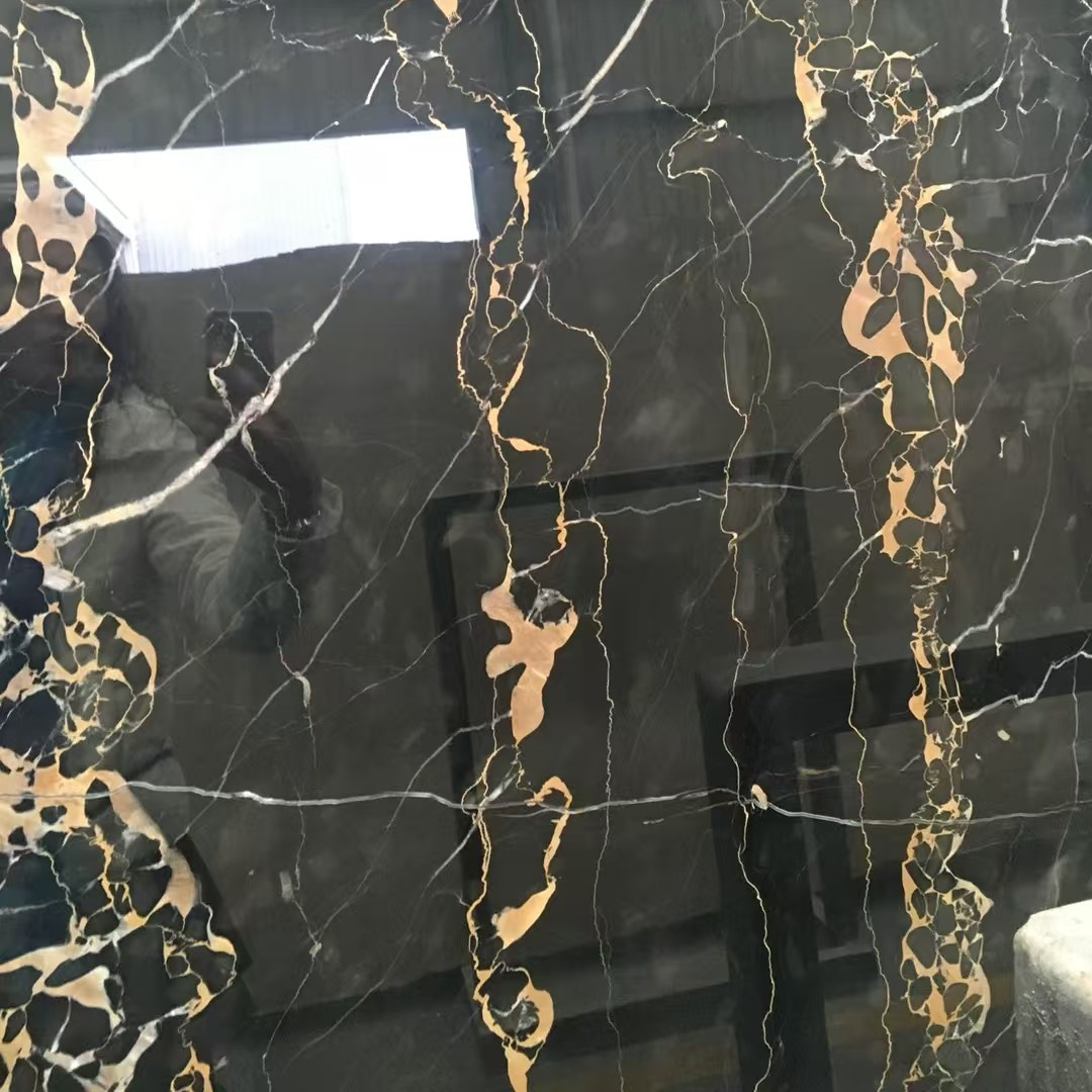 V: Unlike other black marbles (like Marquina, which has faint white veins), Portoro Gold features distinctive luminous golden and white veins on a deep black base. This unique color combination offers a regal, dramatic, and ultra-luxurious feel, resembling liquid gold streaked across a midnight sky.