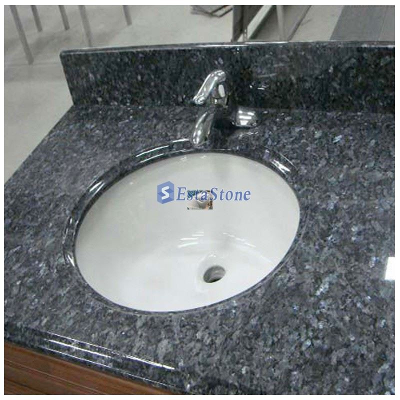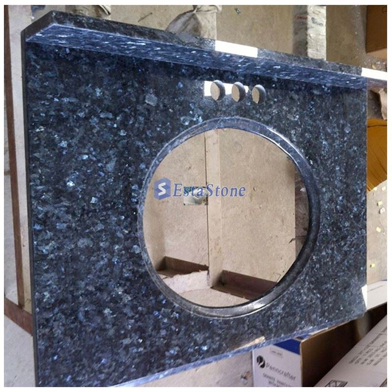 Blue pearl granite is one of the most durable granites you will ever find, which makes it perfect for use on countertops. The stunning blue minerals that blend seamlessly through the gray bedrock can be used in a wide range of kitchen décor styles to amazing effect. This vanity top for bathroom decor, with a high-end finish. This beautiful natural stone vanity top is attached to a white vitreous china under-mount bowl with a safety overflow hole.