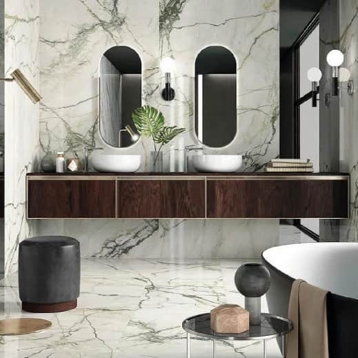 - Marmur Calacatta Oyster: Ciepłe beże i szare żyłki dla klasycznego, bogatego kontrapunktu.