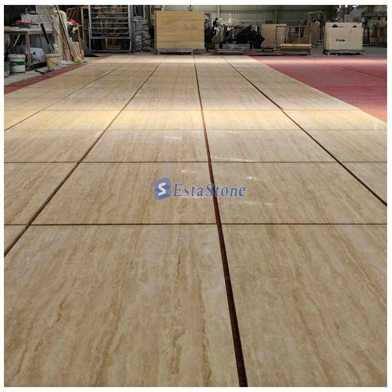Naturalny trawertyn to kamień o pięknych odmianach. Beżowe płytki trawertynowe wnoszą do domu odrobinę natury. Dzięki szerokiej gamie stylów i kolorów do wyboru, można łatwo znaleźć idealne dopasowanie do potrzeb wewnętrznych i zewnętrznych podłóg. Płytki trawertynowe stają się z roku na rok coraz bardziej popularne. Dostępne są w różnych matowych lub błyszczących wykończeniach; opcje obejmują wypełnione szlifowane, niewypełnione szlifowane, szczotkowane, bębnowane i polerowane. Korzystając z podłóg trawertynowych, można stworzyć ponadczasowy, klasyczny wygląd dla własnego zakątka świata z naturalną, neutralną paletą kolorów, która wytrzymuje próbę czasu i pasuje do każdego rodzaju wystroju. Można go stosować na podłogach wewnętrznych, utwardzonych tarasach i ścieżkach ogrodowych.