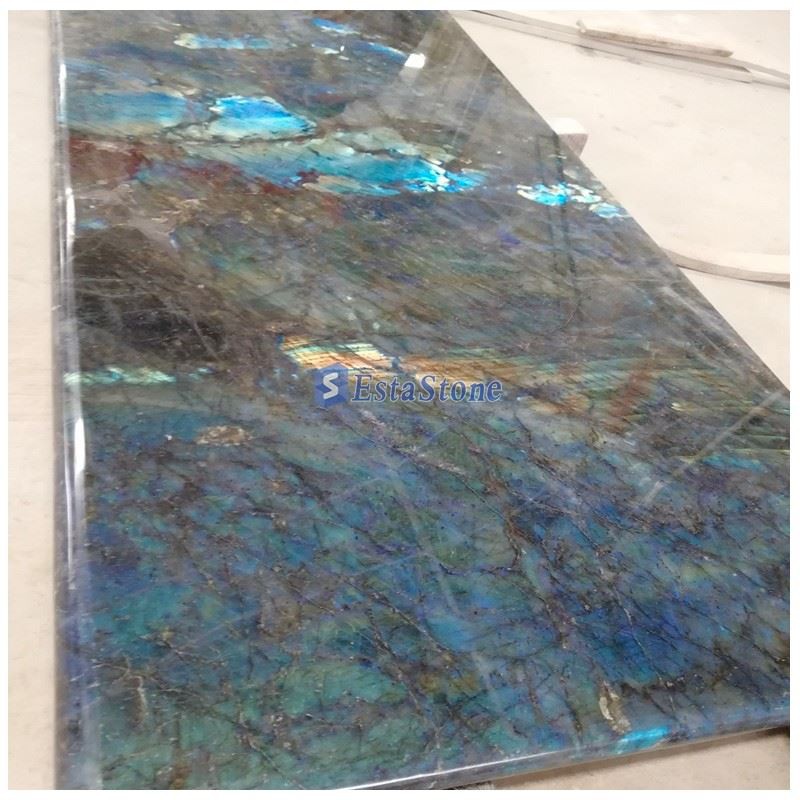 Labradorite is a semi-precious gemstone, extensively used to manufacture slab & surface these days. Some of our customers use it as a replacement for traditional granite slabs because of its strength. We manufacture labradorite semi-precious slabs, tiles, surfaces, countertop & many other luxury interior decor applications.