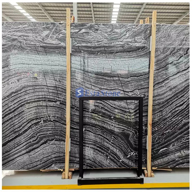 3: Natural Black Wood Grain Polished Marble Slabs and Tiles Factory