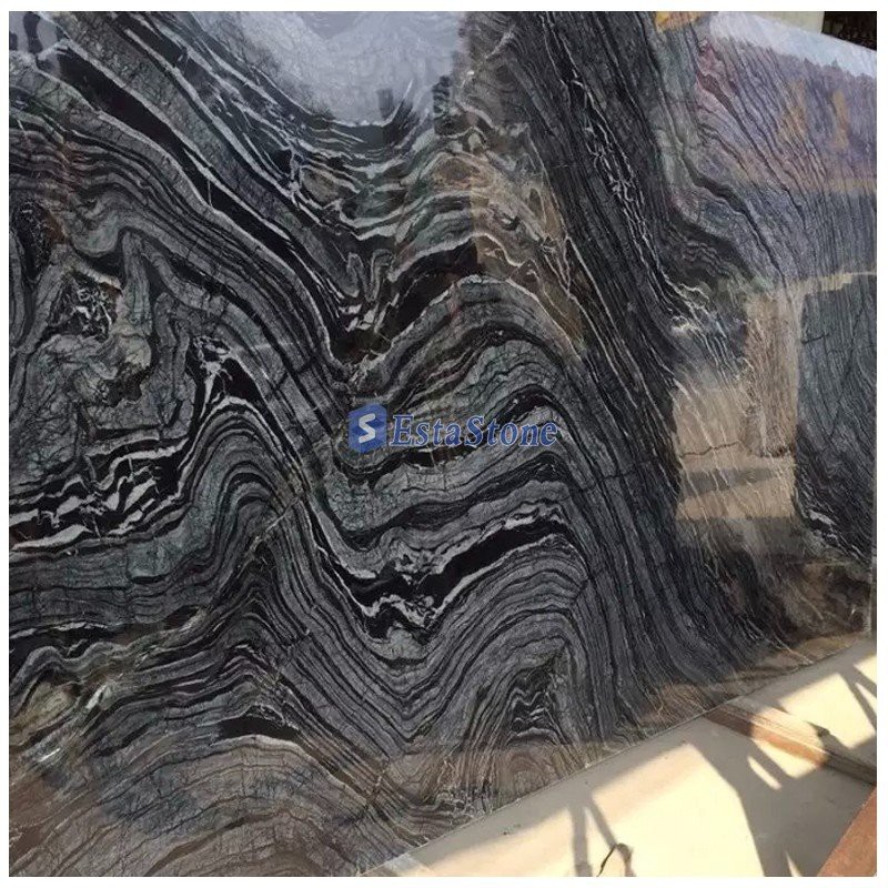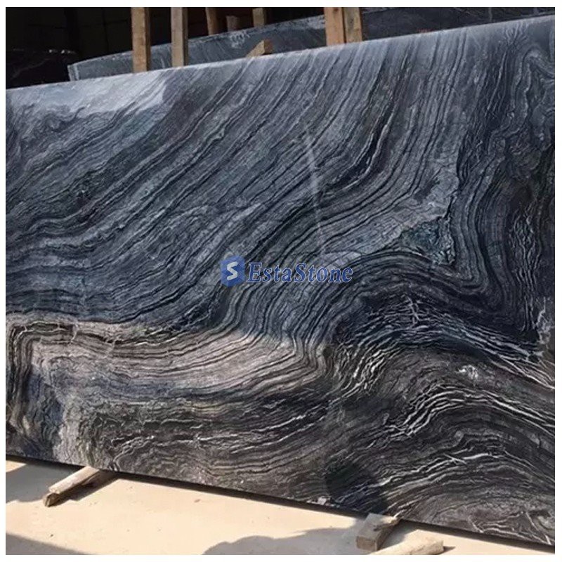 Silver Wave Black Marble Slab's striking veining resembles the layered rings of an ancient tree. This exquisite stone is presented in 12×24 polished field tile and a 2/3 cm polished slab. Esta Stone can easily manage all of your demands with the Chinese Wooden Black Marble Slabs(Silver Wave Marble), whether they are natural stone tiles, slabs, or commercial cut-to-size. We offer a vast assortment of stone hues in particular, as well as custom designs to all of our customers. Black and white horizontal topographical patterning. Black, powerful marble with fascinating detail.