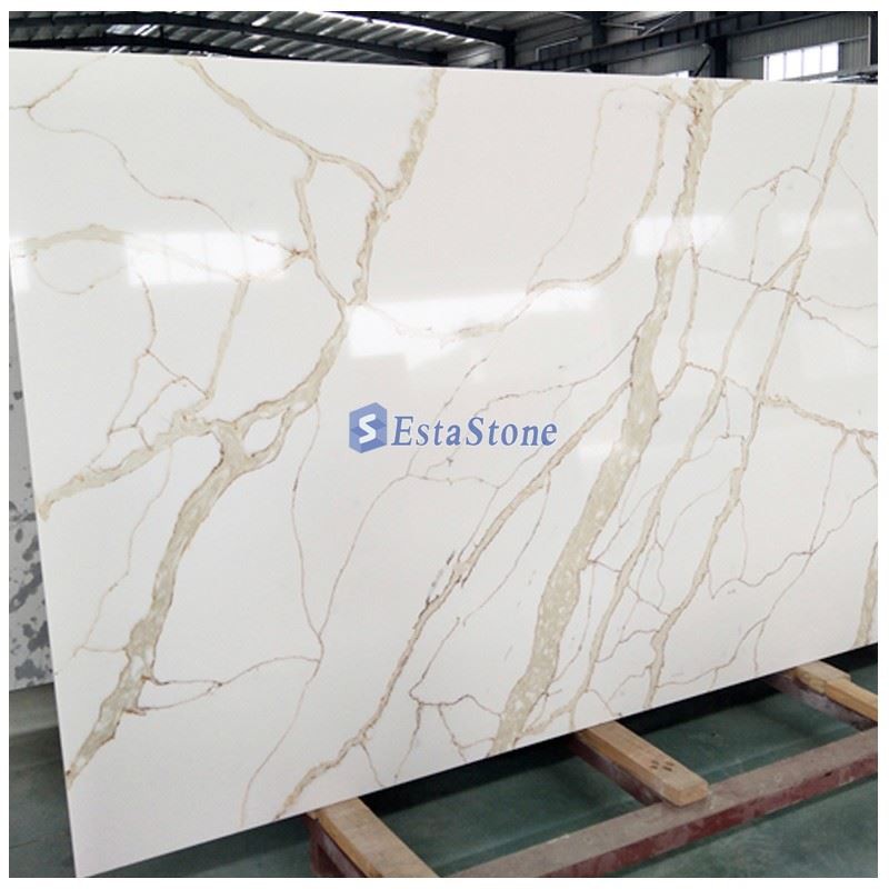 Bancadas de cozinha em pedra de quartzo Calacatta Gold White para projetos de interiores imobiliários