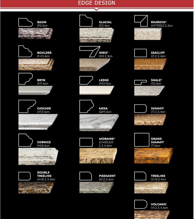 Kitchen Tops: 96"/108"/120" x 26"/36"/42" Bath Vanity Tops: 27"/36"/48"/60"/72" x 22"/24" Thickness: 3/4", 1 1/4" Customized specifications are available